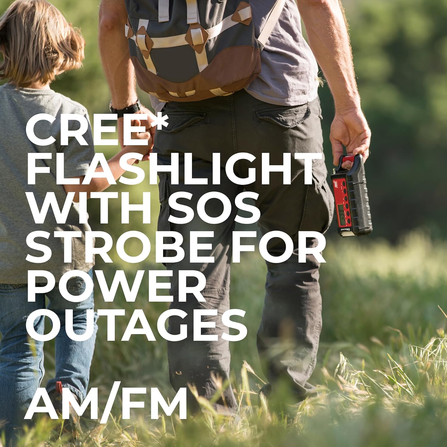 MULTIPLE POWER SOURCES – The ER310 features 3 sustainable power sources to recharge your radio: Solar Panel, Hand Crank, & Rechargeable 2600 mAh Battery. SOLAR PANEL – Simply recharge the internal lithium ion battery with direct sunlight. HAND CRANK – Recharge the radio during a power outage or anytime away from a power source. RECHARGEABLE 2600 mAh BATTERY – The rechargeable & replaceable long life battery provides up to 32 hours of radio operation. The ER310 can also be powered by 6 “AA” Batteries (Not Included) as a backup power solution.