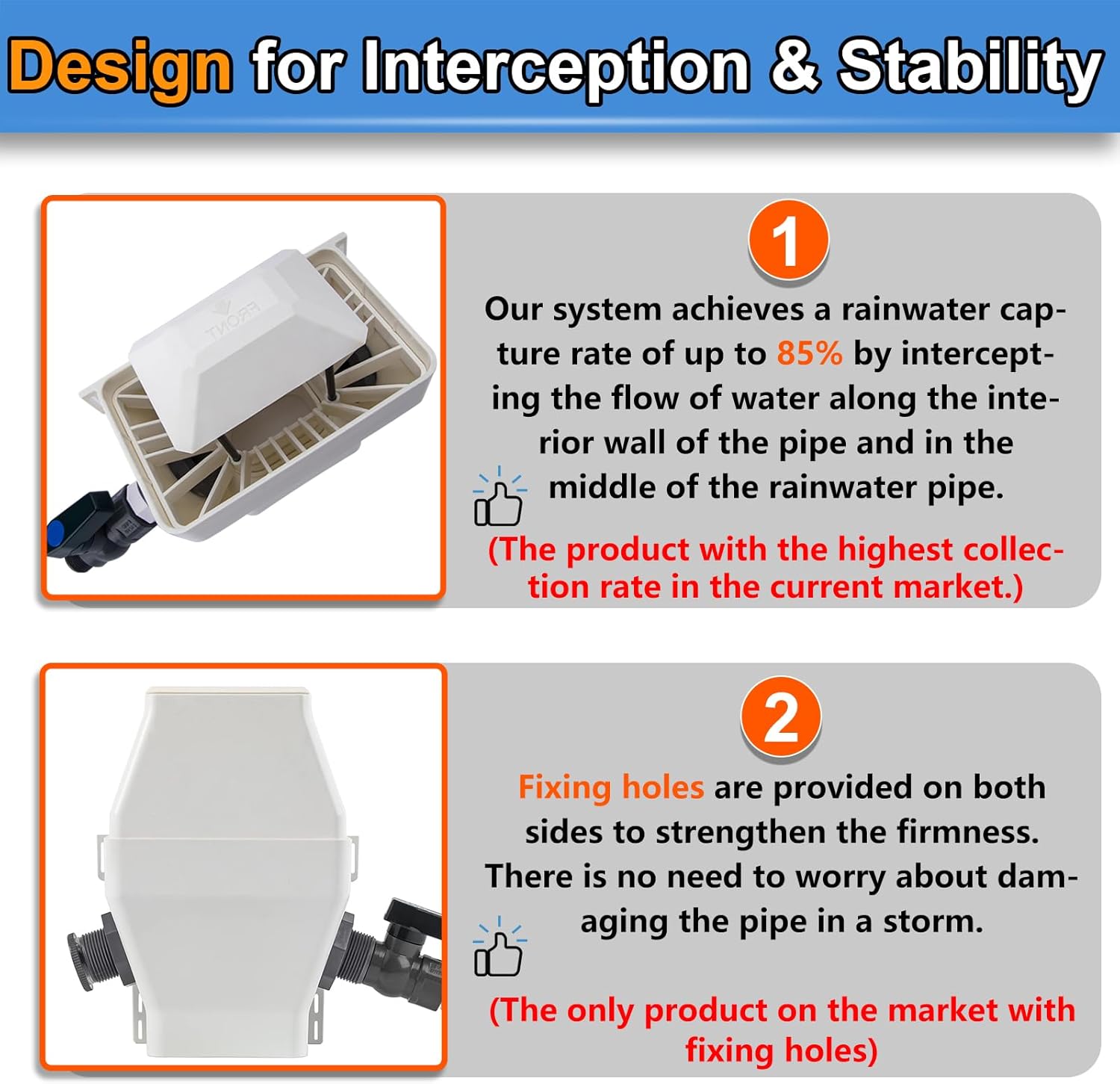 85% COLLECTION RATE: Rain water catching system has a built-in umbrella structure, which increases the contact surface with rainwater and makes it the flow around, so that more water can be collected.